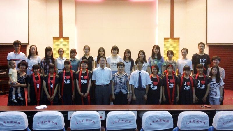 2014年7月23日至8月3日,我校迎来了日本琦玉县立伊奈学園综合高校师生学访团一行16人。日本研修团学生和交流团学生分别在周末到我校的学生家中做客,进行了中国生活体验。中日学生一起上课,并进行了艺术、体育交流。来访的日本学生还参加了包括太极拳、书法、针灸在内的中国文化课程的学习。日本学生参观了金街、古文化街、水上公园和周恩来邓颖超纪念馆等天津著名景点,对天津市日新月异的变化大为赞赏。同时,我校学生提高了日语会话水平,也增强了日本学生的友好情谊。(国际部)