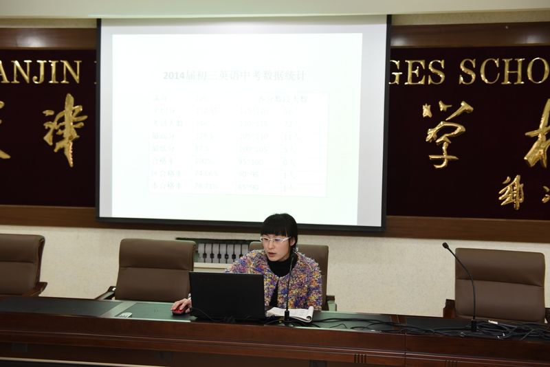 会上2014届初三语文(吴雅杰老师)、数学(王丽娟老师)、英语(王欢老师)、物理(王金城老师)、化学(李莹老师)五门中考科目的备课组长,精心分析了2014届学生的中考成绩,并为2015届初三年级的教学提出指导性建议;2014届初三4班班主任王梅宏老师又对学生心理、班级管理等问题进行了分析,并提出对2015届学生管理的合理化建议,使在座的2015届教师深感受益匪浅。杨宝玉副主任通过各类数据详尽地对2014届和2015届学生整体情况作了比较分析,在肯定了2014届取得的成绩的同时也对2015届学生提出了更高的要求。2015届年级组长孟霞老师代表全体初三教师表示,一定不辜负学校的重托,圆满完成任务。