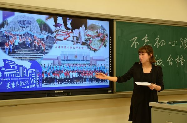 4月26日,天津外大附校团委非常荣幸请到了外国语大学学生会主席迟紫衣同学,为九年级全体团员做了《不忘初心跟党走,做合格共青团员》主题团课。团课上,团员们认真聆听,仔细记录,从外大师姐的亲身经历中学习到了作为共青团员如何在学习工作中发挥模范带头作用,用自己的实际行动践行社会主义核心价值观。团员们收获颇丰,这次团课上的非常成功。