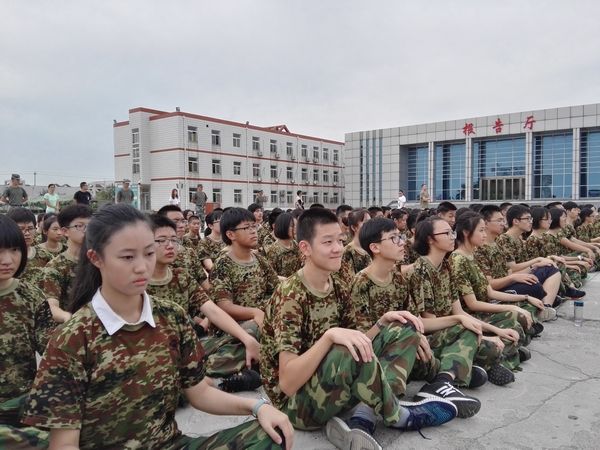 10:30,学生换好迷彩装,排着整齐的队列,在国防教育基地参加开营仪式。