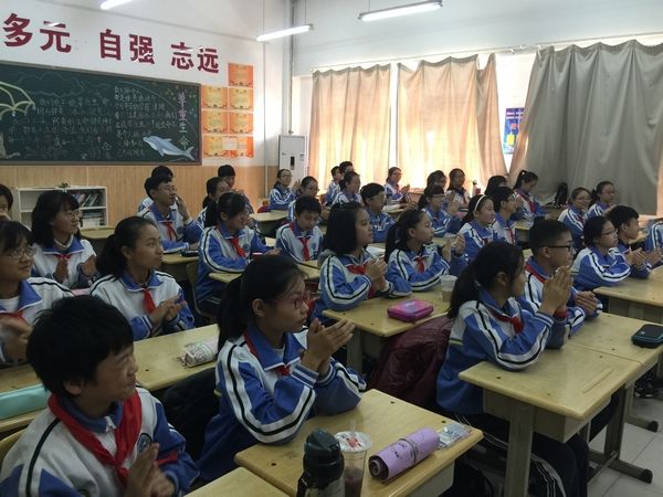 开展“大手拉小手”的团队衔接共建活动,高一年级与七年级、高二年级与八年级结成对子,共同完成“喜迎十九大 走进共青团”主题团队活动。高中的师哥师姐们开动脑筋,创新活动形式,为少先队的小队员们上了一次精彩的团课。分享优秀人物事迹,讲解团的基本知识,传递十九大精神展演,观看学习十九大视频,优秀观后心得朗读交流会等等,让七、八年级的少先队员们进一步认识了解共青团,体会十九大精神,发现祖国的发展变化,树立为国家建设贡献自己力量的决心。